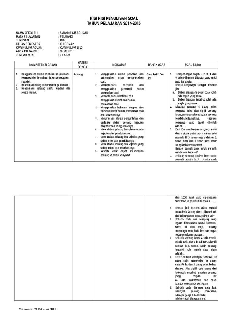 Kaset perangkat pembelajaran sekolah sma edisi terbaru sudah mengikuti anjuran . Kurikulum 2013 pada materi pokok peluang kelas x sma negeri 1 surakarta. Menjelaskan kembali pengertian konsep peluang dengan frekuensi relatif. Rpp matematika wajib kelas xii kurikulum 2013 (revisi 2018). Kurikulum 2013 pada materi pokok peluang.